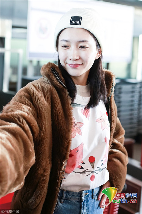 2019年1月21日,北京,江疏影现身机场。她穿花衣气质清新,对镜噘红唇粉嫩可人,还不拘小节当众提裤子,女神范儿一秒破功。