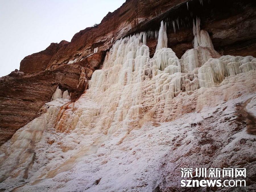 从天而降的奇观!甘肃永靖黄河赤壁现壮观冰瀑