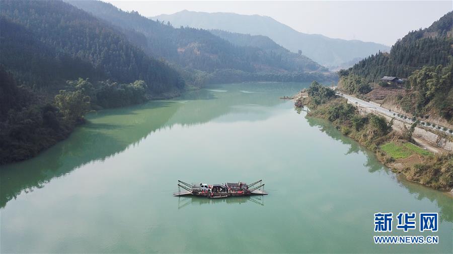 1月22日,渡轮在都柳江上行进(无人机航拍)。 新华社记者 欧东衢 摄