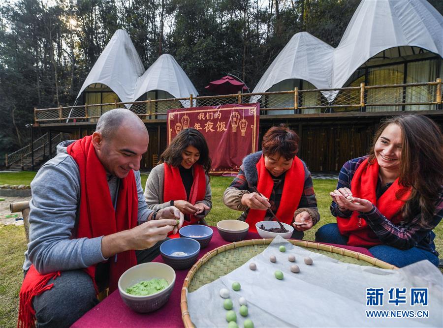 1月22日,留学生与临安当地百姓一起包汤圆。新华社记者 徐昱 摄