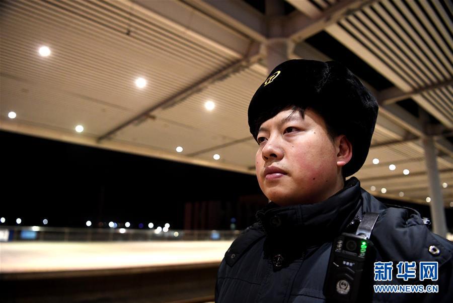 1月22日,李翔在新乡东站站台上立岗进行G402次列车进站接车作业。