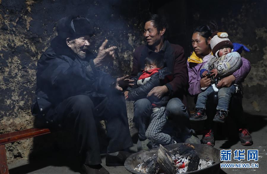 1月25日,冯万才(左一)与家人在一起聊天。 新华社记者 江宏景 摄