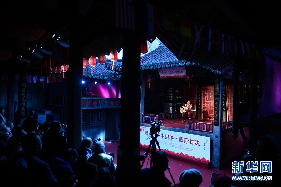 1月27日,来自意大利的里卡多在“国际村晚”上表演吉他弹唱。