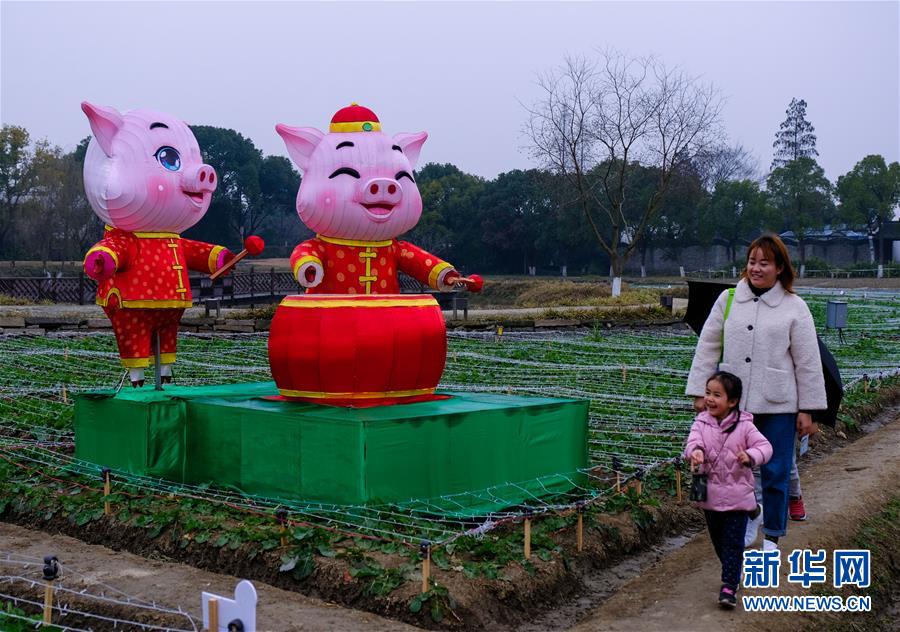 1月28日,游客在乌镇景区观赏金猪闹春彩灯。新华社记者 徐昱 摄