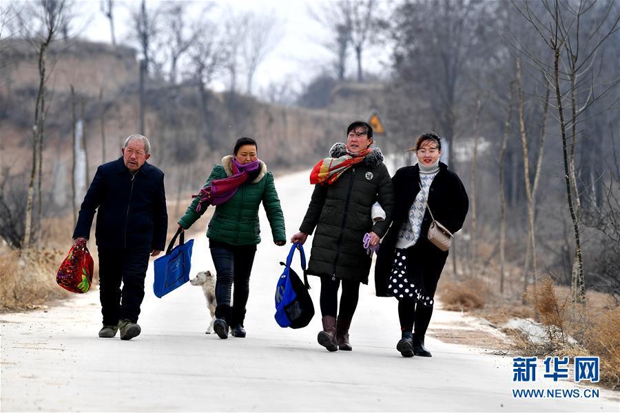 1月27日,在闻喜县张才岭村,村民去村口搭车准备赶集。 新华社记者 詹彦 摄