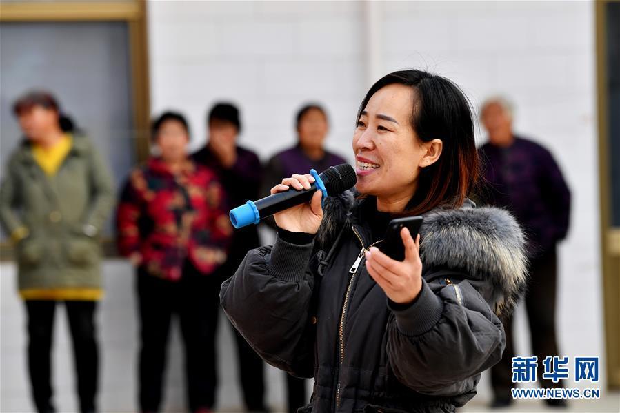 闻喜县追梦合唱团的团员在张才岭村“幸福小院”为村民演出(1月25日摄)。新华社记者 詹彦 摄