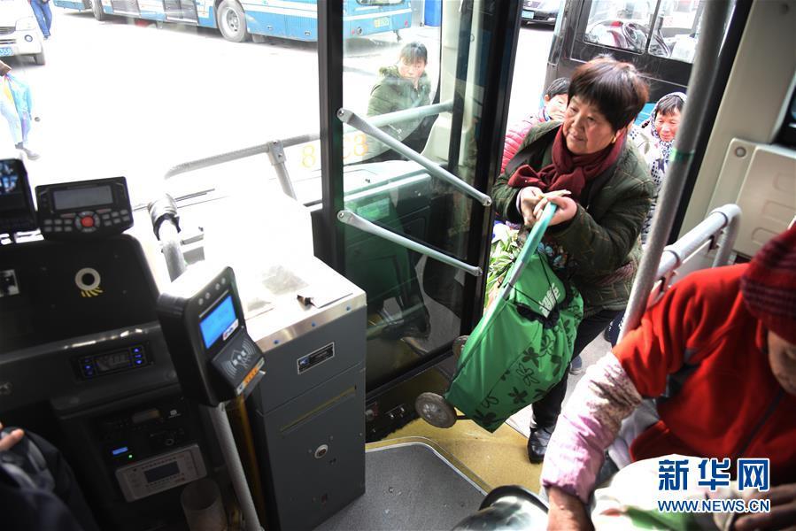 1月28日,乘客拎着在大集上采购的年货准备乘坐813路公交车回家。新华社记者 王凯 摄