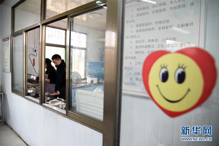 1月27日,陈明强(右)在完成上午工作任务后,来到车队食堂,协助在车队食堂工作的妻子。新华社记者 王凯 摄