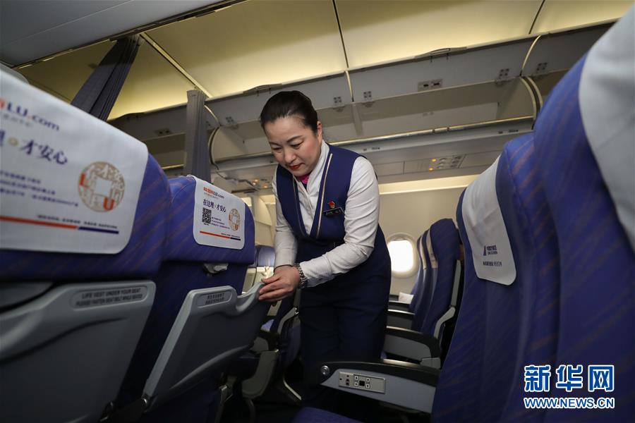 1月29日,庞雪梅在乘客离机后整理客舱。 新华社记者 龙雷 摄