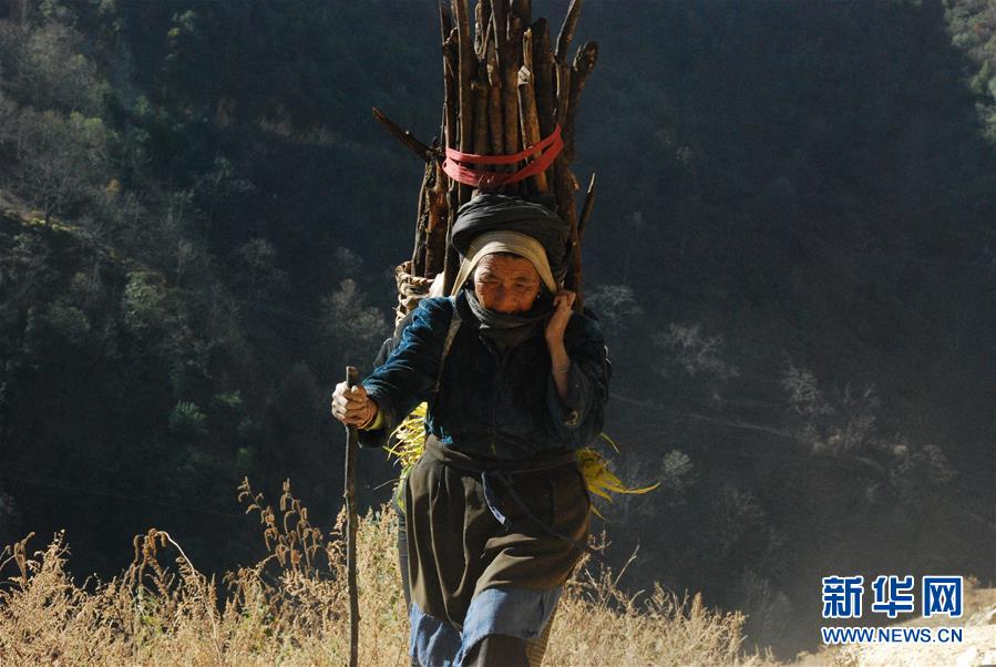 1月25日,在云南省兰坪县,余永妹背柴回家。