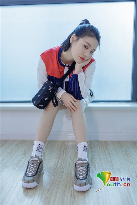马思纯青春洋溢玩转运动style 穿撞色长外套明艳俏皮