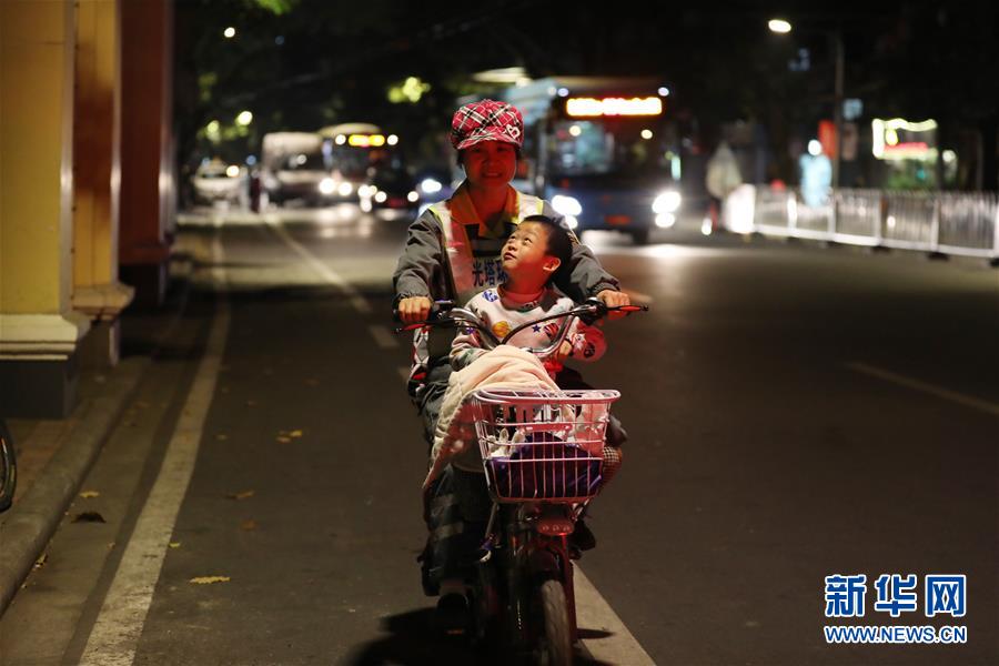 周祝下班后骑车带着儿子回出租屋(1月30日摄)。 新华社记者田建川摄