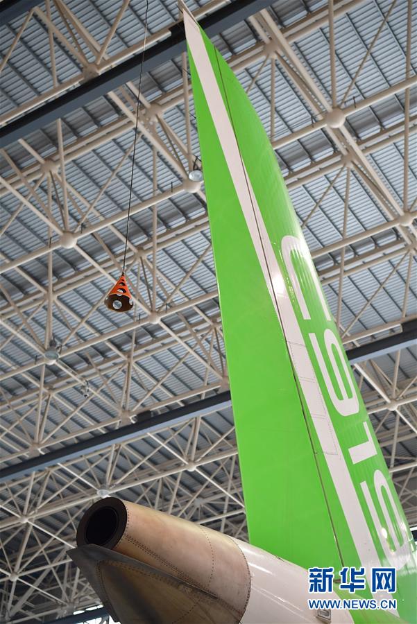 中国飞行试验研究院C919试飞团队科研人员在C919客机101架机垂尾加装了静压拖锥,用于测量飞机飞行过程中的静压(1月30日摄)。 新华社记者 邵瑞 摄