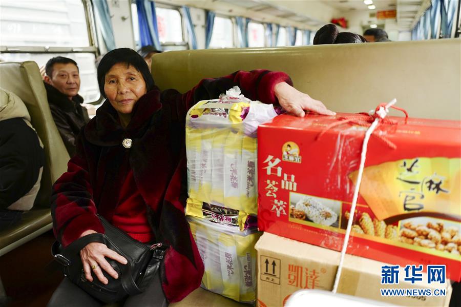 1月31日,在5612次绿皮“小慢车”上,乘客带着年货回老家过年。 新华社记者 刘潺 摄
