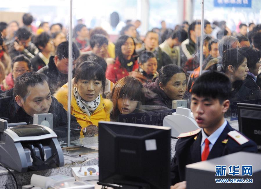 旅客在重庆火车北站售票窗口购买春运车票(2012年1月7日摄)。 新华社记者李健摄