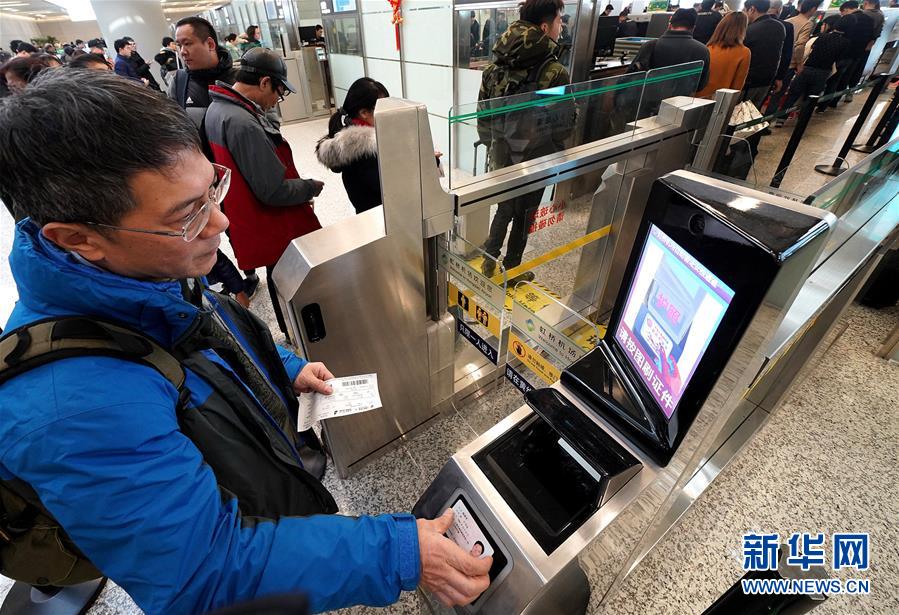 1月21日,旅客在上海虹桥国际机场自助验证通道办理登机手续。 新春佳节临近,春运进入高峰。流动的中国,处处涌动温馨的真情。 年年春运,岁岁不同。今年春运高峰有什么新特点,来往旅客有什么新变化?新华社记者深入火车站、机场、长途汽车站亲身体验。 新华社记者 陈飞摄