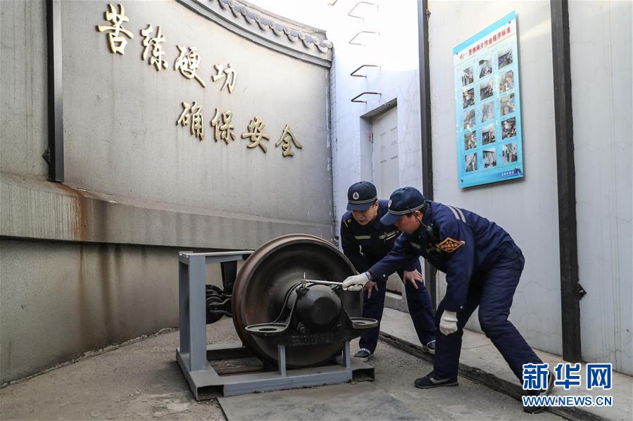 1月22日,姚福臣对列车进行检查。 新华社记者 潘昱龙摄