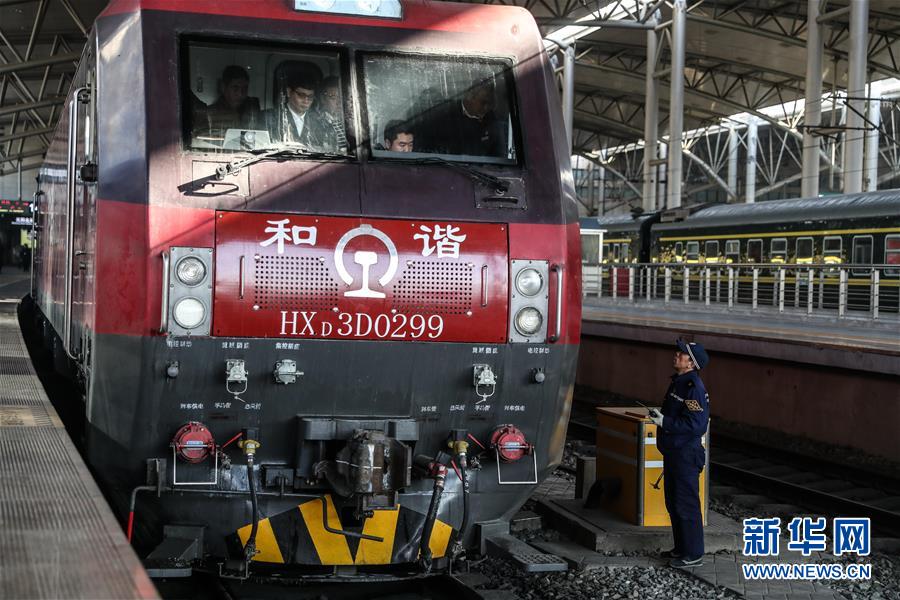 2月2日,姚福臣等待列车驶出沈阳北站。 新华社记者 潘昱龙摄