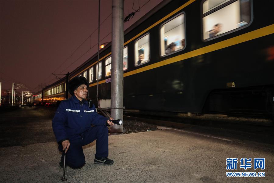 2月2日,姚福臣等待列车驶出沈阳北站。 新华社记者 潘昱龙摄