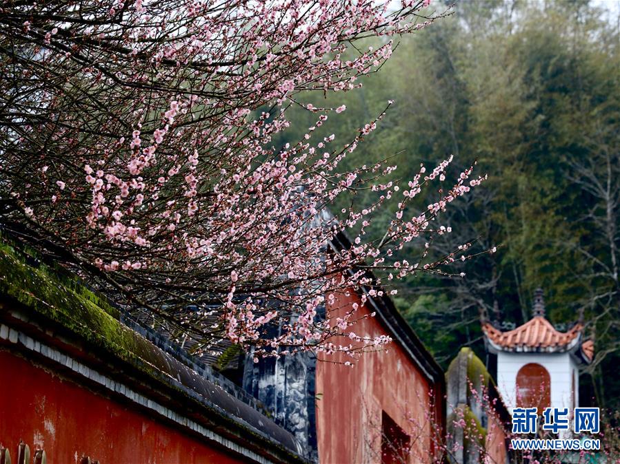 2月10日,福州林阳寺内梅花盛开。 新春佳节期间,位于福州北峰山区的千年古刹林阳寺内梅花相继绽放,吸引众多市民前往观赏。林阳寺是福州五大禅寺之一,建寺至今已有千年历史。 新华社记者 姜克红 摄