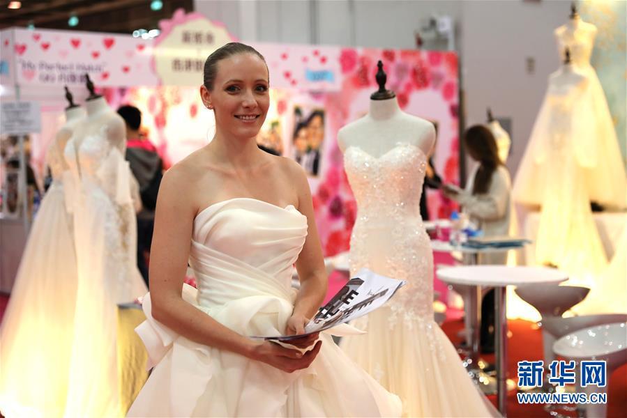 2月10日,模特展示婚纱。 新华社记者 吴晓初 摄
