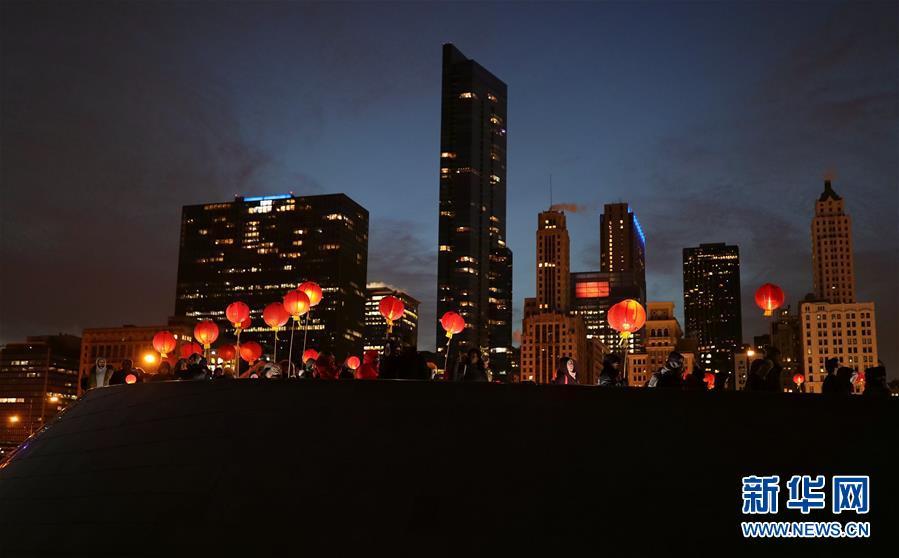 2月9日,在美国芝加哥,民众参加芝加哥艺术博物馆组织的中国灯笼游行活动。 为庆祝中国农历新年,芝加哥艺术博物馆举行中国灯笼游行和舞狮等活动,吸引了数百名当地民众参加这一年度盛事。 新华社记者汪平摄