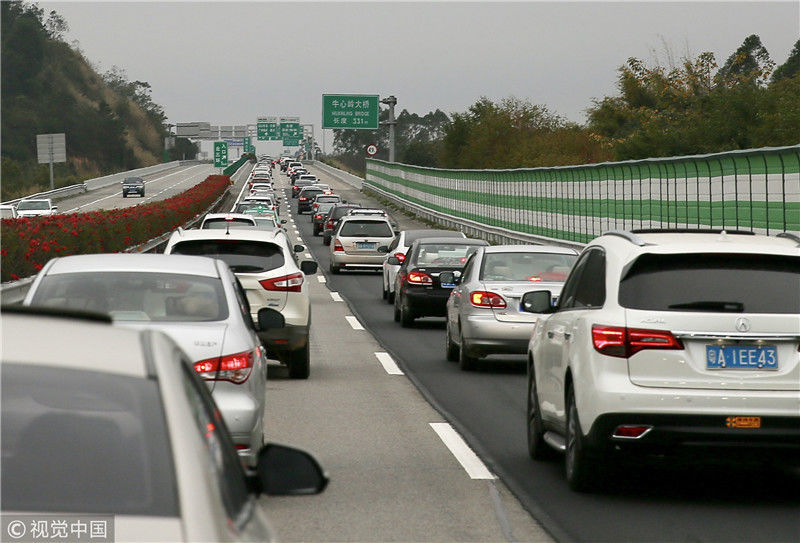 2019年2月9日傍晚,大广高速牛心岭大桥路段,回广州方向拥堵数公里。马强/南方都市报/视觉中国