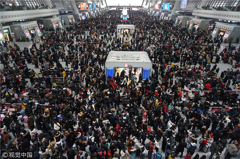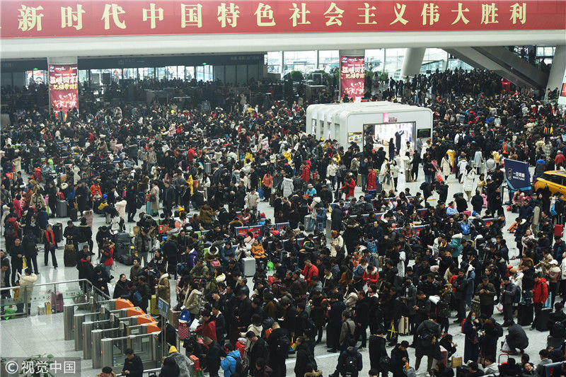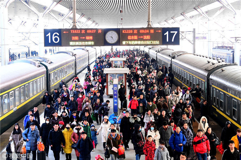 2019年2月10日,辽宁沈阳,在辽宁沈阳迎来铁路返程高峰。沈阳/视觉中国