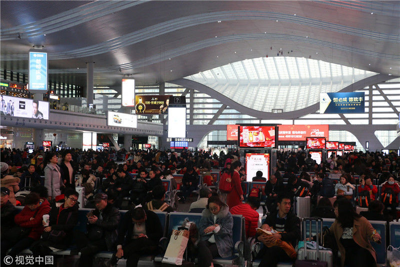 2019年2月9日,浙江宁波火车站候车大厅。王齐胜/视觉中国