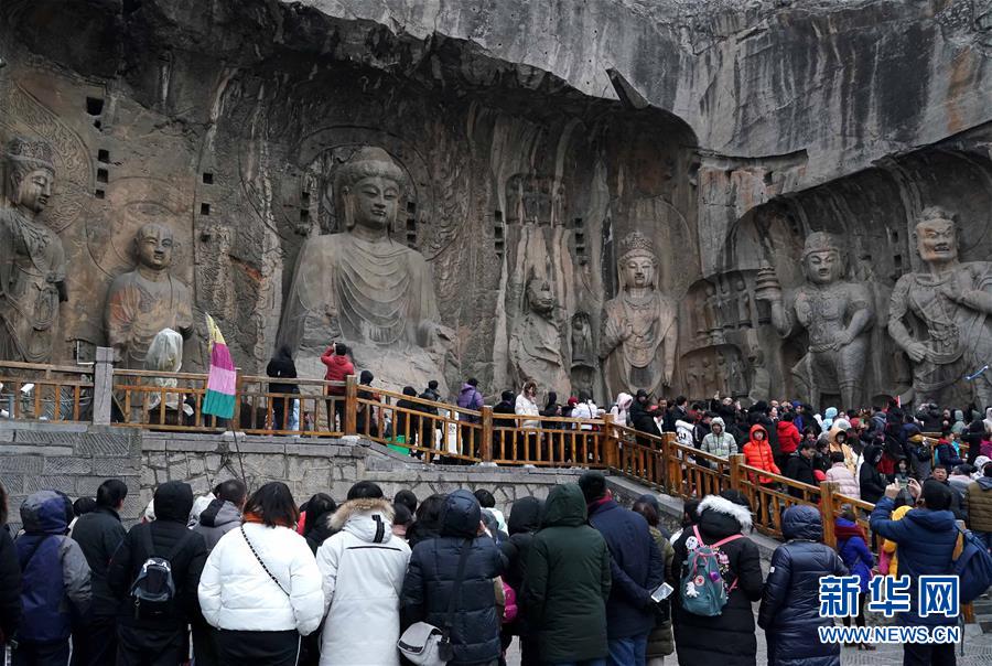 游客在河南省洛阳市龙门石窟景区游览(2月8日摄)。新华社记者李安摄