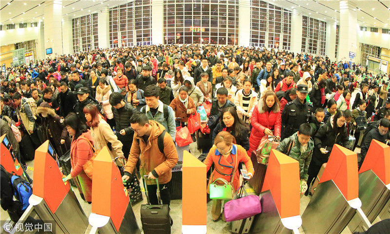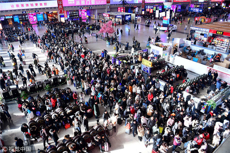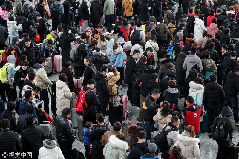 2019年2月10日,辽宁沈阳,在辽宁沈阳迎来铁路返程高峰。沈阳/视觉中国