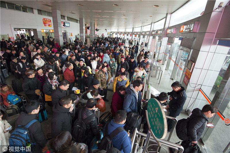 2019年2月10日,旅客走出杭州火车站出站口。龙巍/视觉中国