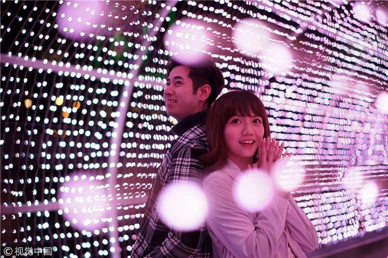 情人节临近 情侣奔赴网红地拍照秀恩爱