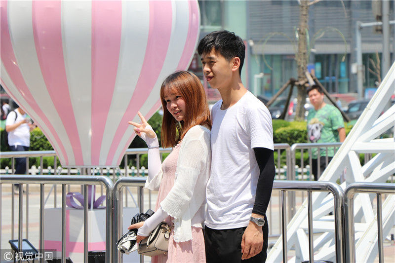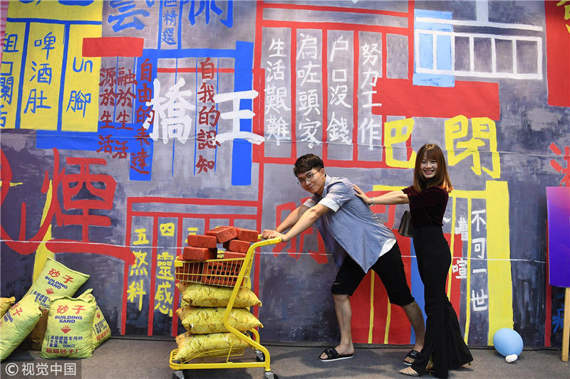 2018年8月17日,火爆国外社交软件Instagram(照片墙)的“网红墙”亮相广西南宁。当日是农历七月初七,在Instagram(照片墙)上爆红的伦敦美人鱼、夏威夷海洋等背景墙悉数亮相,吸引大批市民及情侣前来合影留念。俞靖(广西分社)/中新社/视觉中国