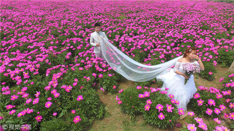 2016年4月28日,河南洛阳,市民在洛龙区丰李村芍药花海中流连忘返。张晓理/视觉中国