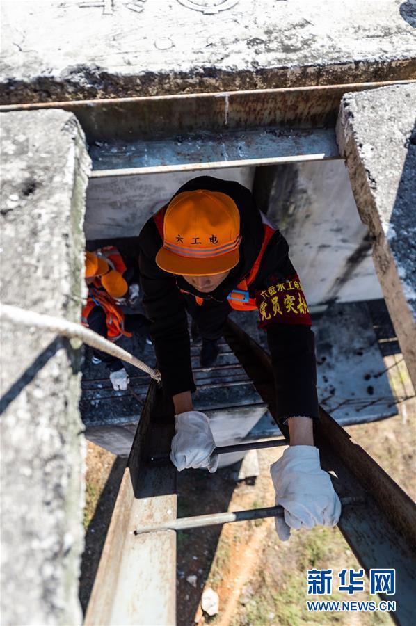 2月12日,六盘水工电段的桥隧工人沿检查梯攀上桥面。 春运期间,中国铁路成都局集团有限公司六盘水工电段的桥隧工人坚守在位于乌蒙山区沪昆铁路天生桥特大桥检查岗位上,保障春运列车安全通行。 新华社记者 陶亮 摄