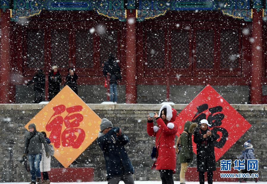 2月14日,游客在北京故宫拍摄雪景。 当日,北京降雪,大批游人来到故宫游览赏雪。 新华社记者 罗晓光 摄