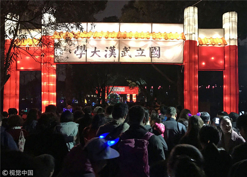 2018年3月3日是正月十六,武汉天气转晴,东湖灯会迎来3.6万人夜赏花灯,弥补了元宵当晚遇雨的遗憾。承影/视觉中国