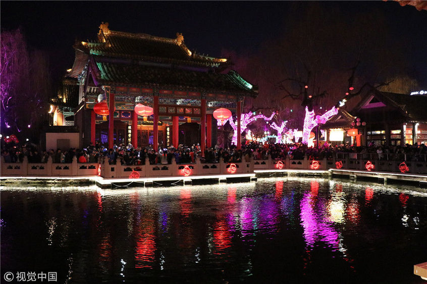2018年3月2日,农历正月十五,济南市第三十九届趵突泉迎春花灯会迎来人流高峰,市民、游客纷纷前来赏花灯,现场人山人海。徐舟/视觉中国