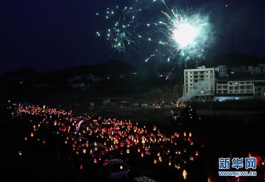 2月18日,群众在四川省南充市嘉陵区金宝镇点亮“蛴蟆灯”。 当日是农历正月十四,夜幕降临后,川渝等地数万名群众在四川省南充市嘉陵区金宝镇汇聚,点亮“蛴蟆灯”,敲着锣鼓唱着歌谣,将“蛴蟆”送到几公里外的田边或者河边烧掉,祈福健康平安。星星点点的灯光在乡间小路闪烁移动,场面壮观热烈。 “送蛴蟆”祈福这一习俗源于清朝,历经演变成为川东北地区一个古老而神秘的地方民俗节日。 新华社记者 江宏景 摄