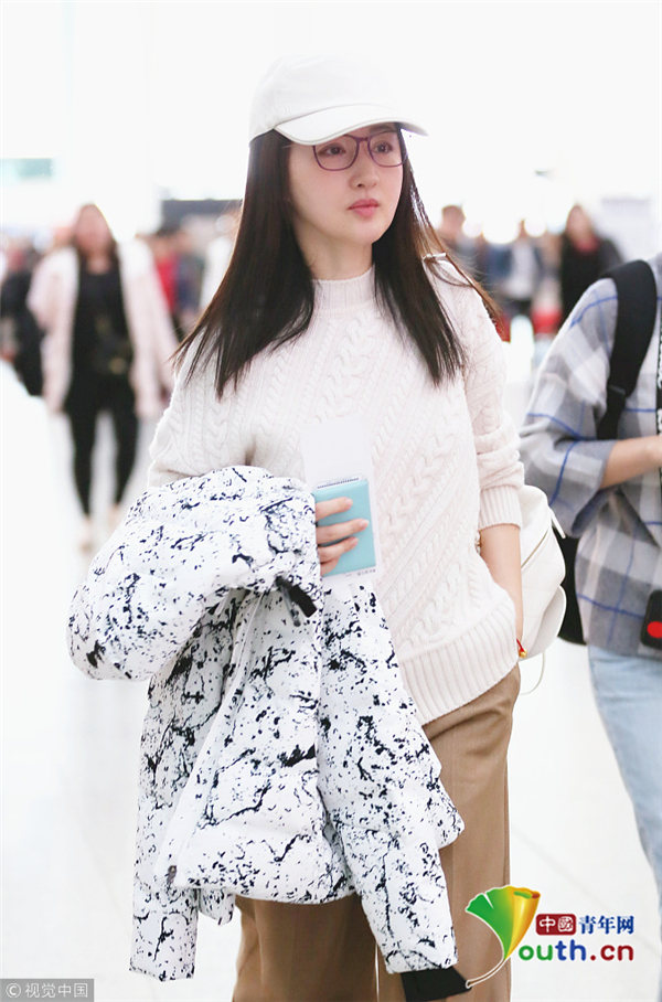 杨钰莹棒球帽配黑框镜文艺十足 皮肤白皙保养好