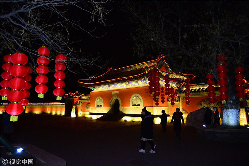2019年2月18日夜,北京,圆明园遗址公园南门口密密麻麻等待入园观灯的游客。当晚,圆明园遗址公园“最是故园情浓浓家乡愁——圆明园皇家灯会”正式开展迎客,数万游客从四面八方纷至沓来,将几处灯会展区围得水泄不通。樊甲山/视觉中国