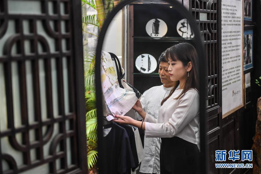 在大芬村太阳山艺术中心,艺术家陈求之和女儿陈山叶商讨艺术作品的衍生品(1月10日摄)。新华社记者 毛思倩 摄