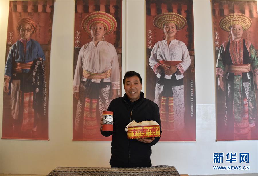湖南省隆回县虎形山瑶族乡白水洞村茶叶合作社负责人谭德友展示全新设计包装的茶叶产品(1月30日摄)。 新华社记者 白田田 摄