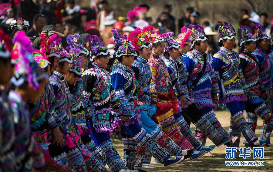 2月19日,村民在赛装节上跳起欢快的舞蹈。 新华社记者江文耀摄