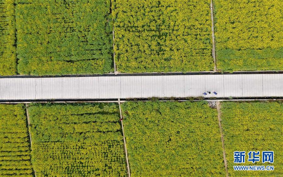 这是2月19日在四川省攀枝花市米易县普威镇拍摄的油菜花田(无人机拍摄)。 初春时节,四川省攀枝花市米易县普威镇的油菜花次第绽放,乡间田野春意盎然。 新华社记者 薛玉斌 摄