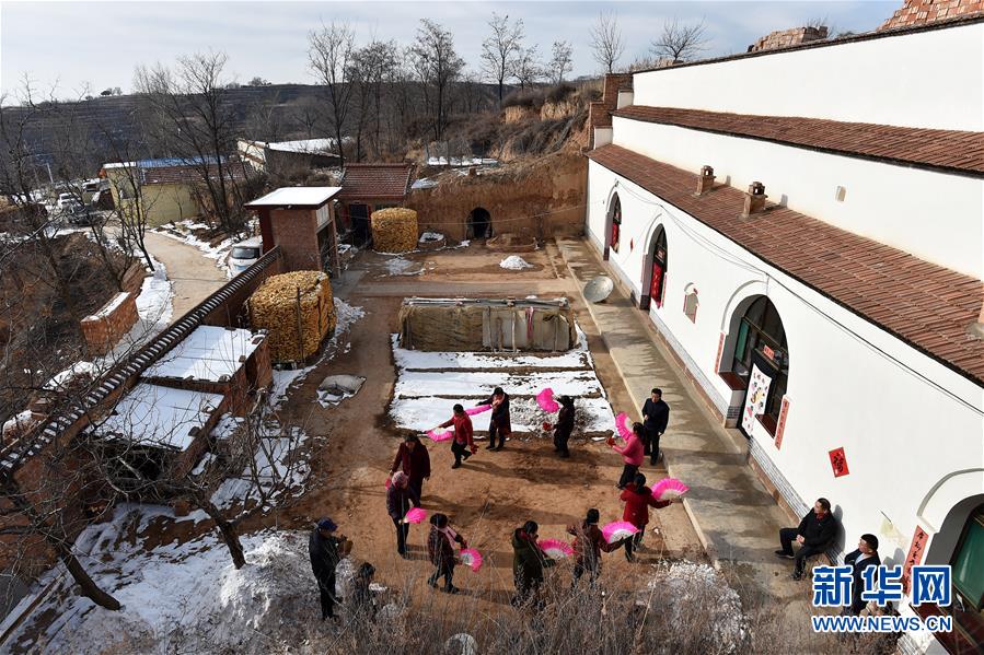 在武乡县大有乡王庄沟村,村民们在排练节目(2月15日摄)。 新华社记者 詹彦 摄