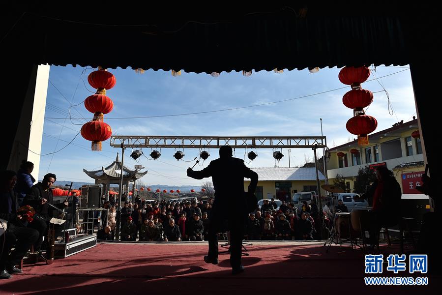 在武乡县大有乡王庄沟村,村里请来的剧团在文化剧场为村民演出(2月16日摄)。新华社记者 詹彦 摄