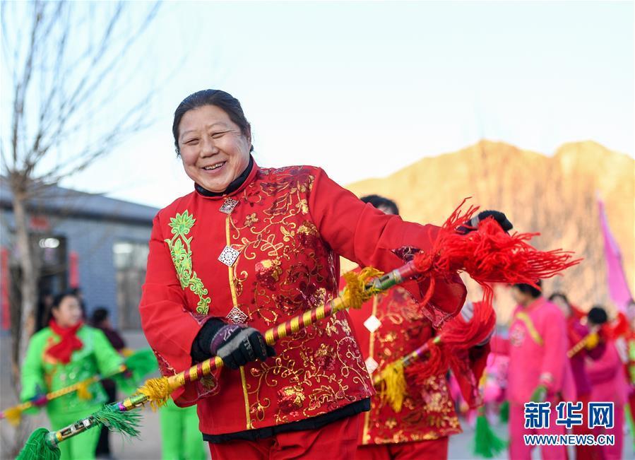 2月20日,内蒙古赤峰市巴林左旗大良沟村的村民在表演扭秧歌。 当日是农历正月十六,在内蒙古赤峰市巴林左旗的大良沟村,农民自发组织闹社火、游九曲、猜灯谜等传统民俗活动,为人们带来欢歌和笑语。 新华社记者 彭源 摄