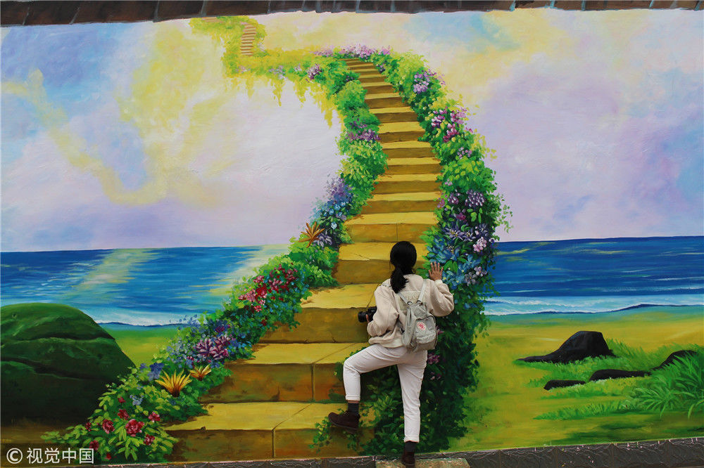 2016年4月13日,云南丽江,隐藏在深山坝子上的童话彩色村,原来名字叫金龙村,位于丽江古城区七河镇。这就像来自天边的天梯,或许幸福就在那一头。视觉中国